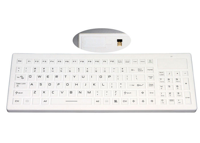 Het SKB-126-WL van KINGLEADER is een waterdicht medisch toetsenbord met een nummerpad en een speciale locatie voor het afdrukken van een aangepast logo.